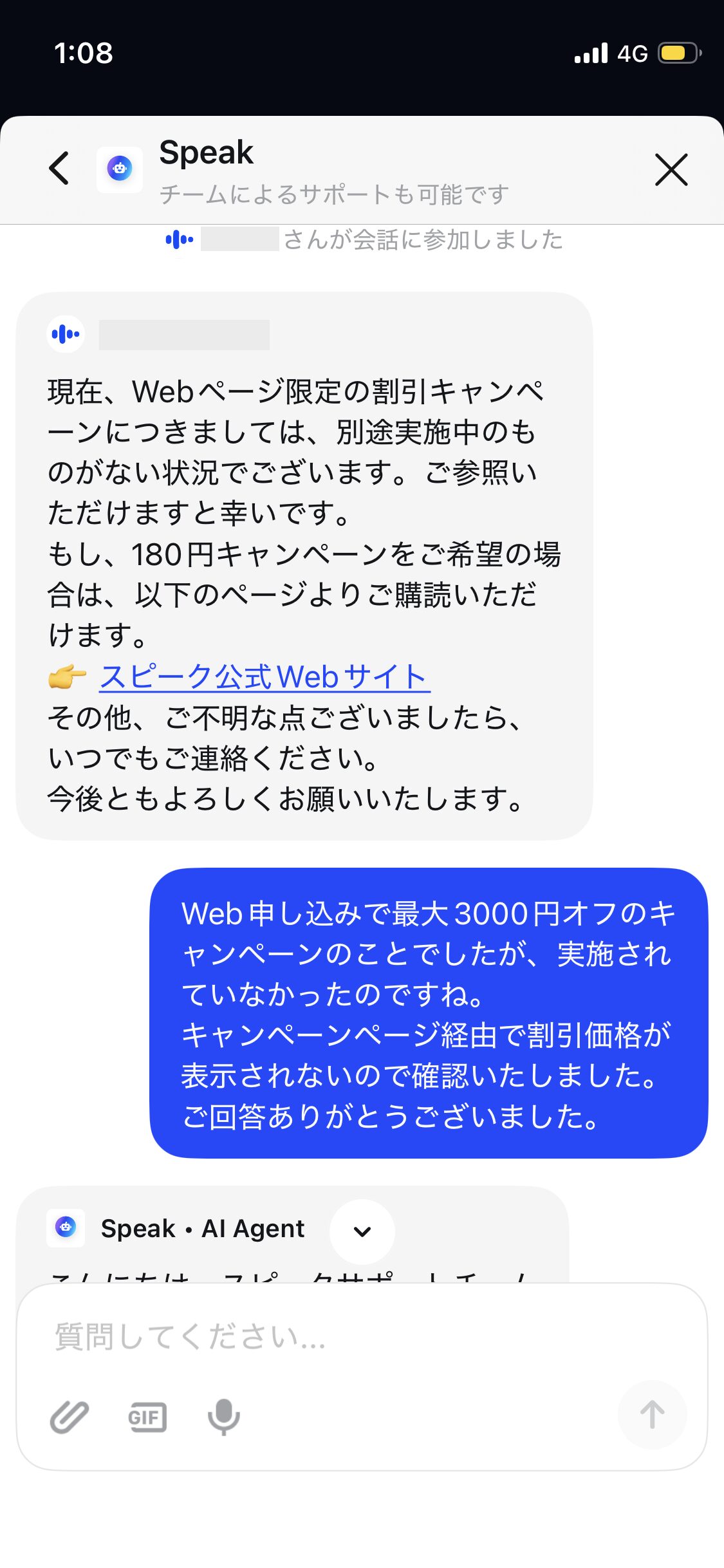 当サイトでご紹介しているスピークのWEBページ限定割引は終了しています。(著者がスピークのサポートで確認)